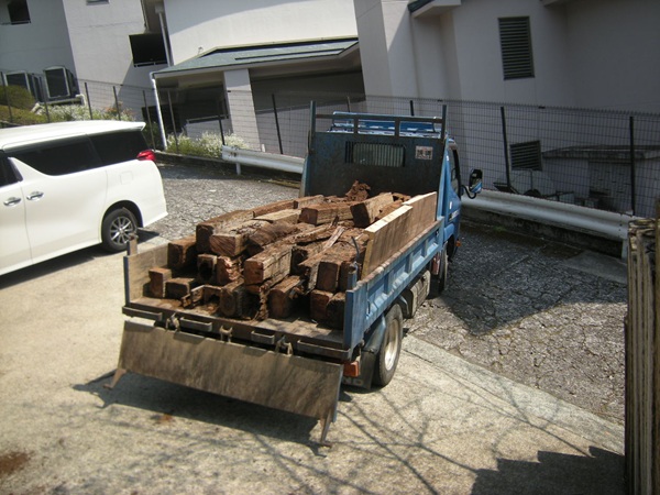 枕木の撤去&処分 お庭の踏み石の代わりに置かれていた枕木の撤去と処分を承りました。 かなりの油分が浸み込んでいましたので、再処分費用は持込先の判断次第です。 はじめに軽トラック1台分持込み、再処分金額を確認したうえで、残り大半のお取引金額を提示しました。 « 名古屋・浜松方面代理店さん募集中